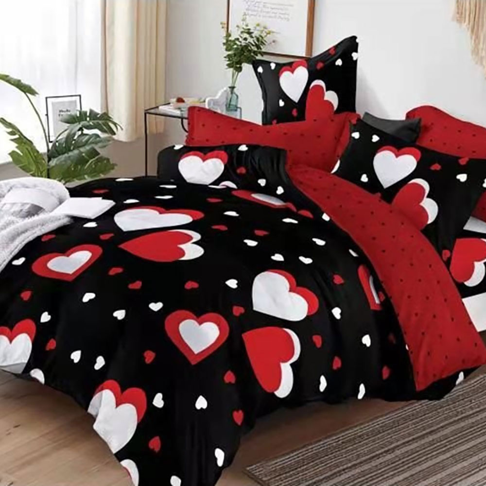 Lenjerie pentru pat dublu, cu 6 piese confectionate din 100% bumbac, tesatura tip finet. Materialul din care este confectionata lenjeria este de calitate superioara cu o textura fina, moale, foarte placuta la atingere si tratat antisifonare. Garantat nu se decoloreaza daca se respecta instructiunile de intretinere.