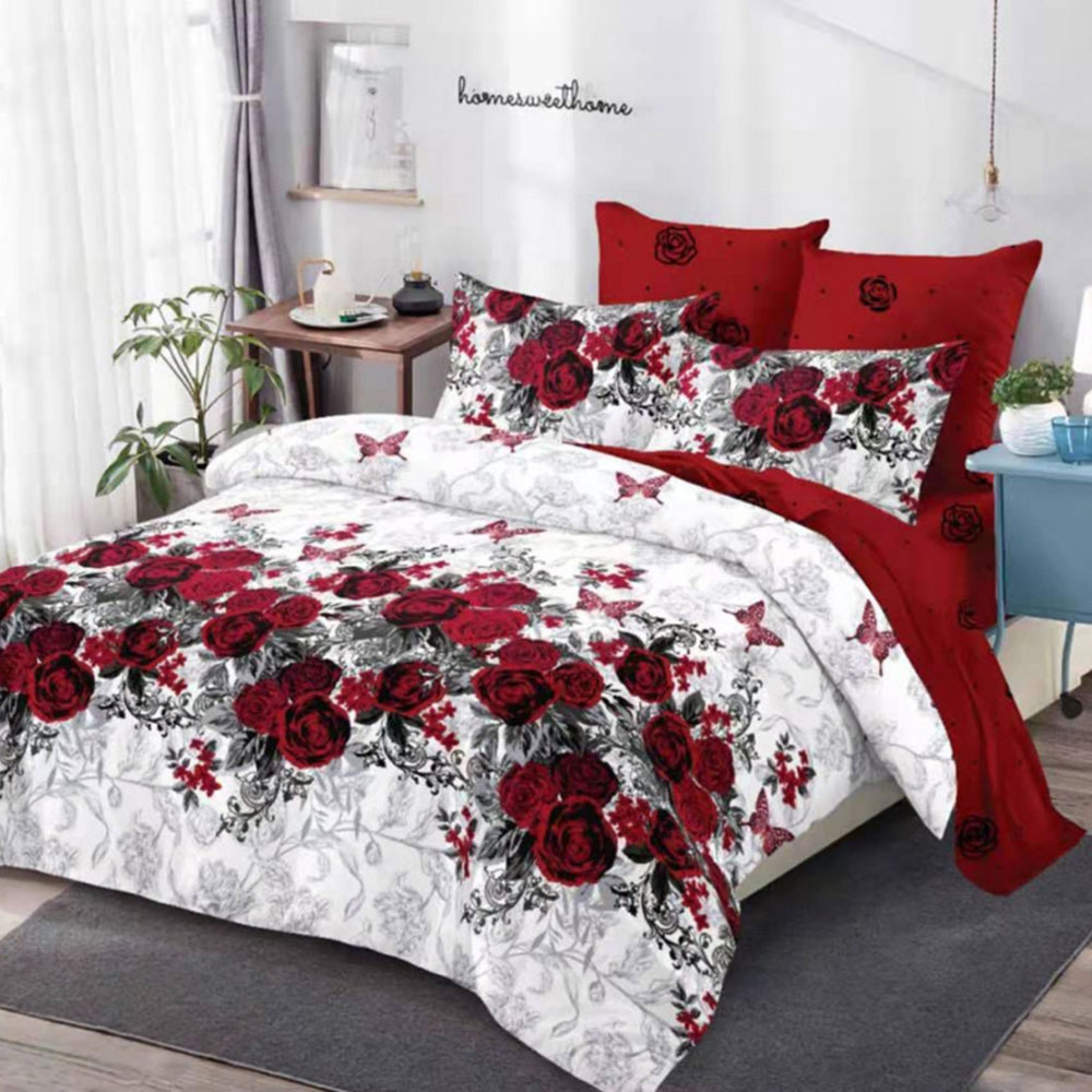 Lenjerie pentru pat dublu, cu 6 piese confectionate din 100% bumbac, tesatura tip finet. Materialul din care este confectionata lenjeria este de calitate superioara cu o textura fina, moale, foarte placuta la atingere si tratat antisifonare. Garantat nu se decoloreaza daca se respecta instructiunile de intretinere.