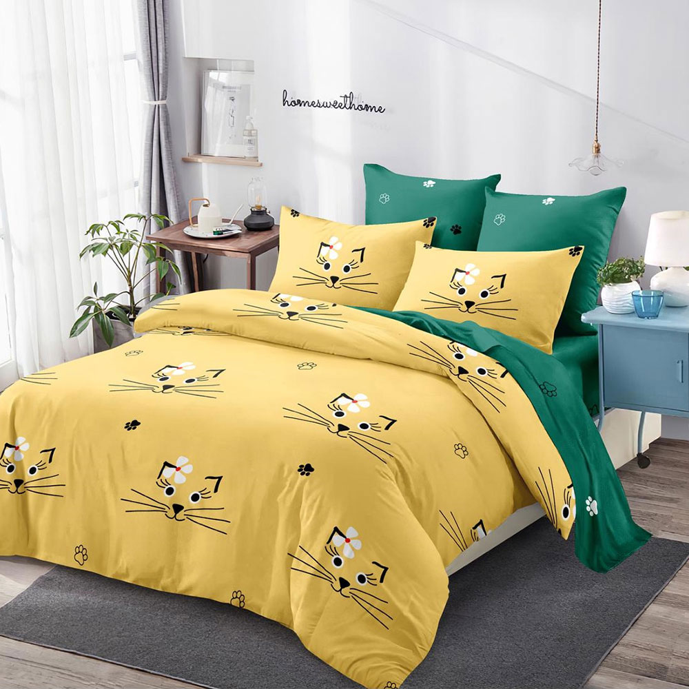 Lenjerie de pat cu 6 piese din bumbac 100%, tesatura FINET. Finet-ul este o tesatura care este tratata antisifonare, de o calitate superioara, cu o textura fina, usor pufoasa, moale si care permite pielii sa respire, pastrand temperatura corpului optima pe parcursul noptii.