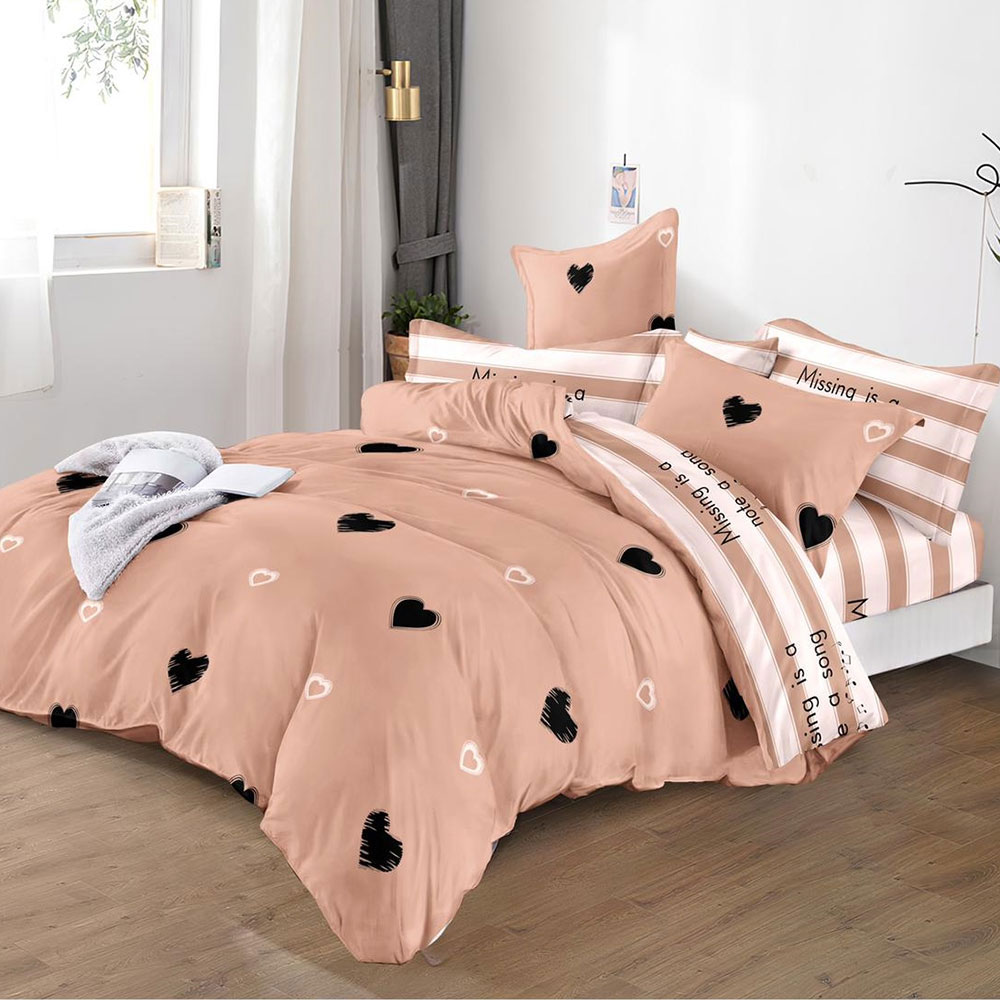 Lenjerie de pat cu 6 piese din bumbac 100%, tesatura FINET. Finet-ul este o tesatura care este tratata antisifonare, de o calitate superioara, cu o textura fina, usor pufoasa, moale si care permite pielii sa respire, pastrand temperatura corpului optima pe parcursul noptii.