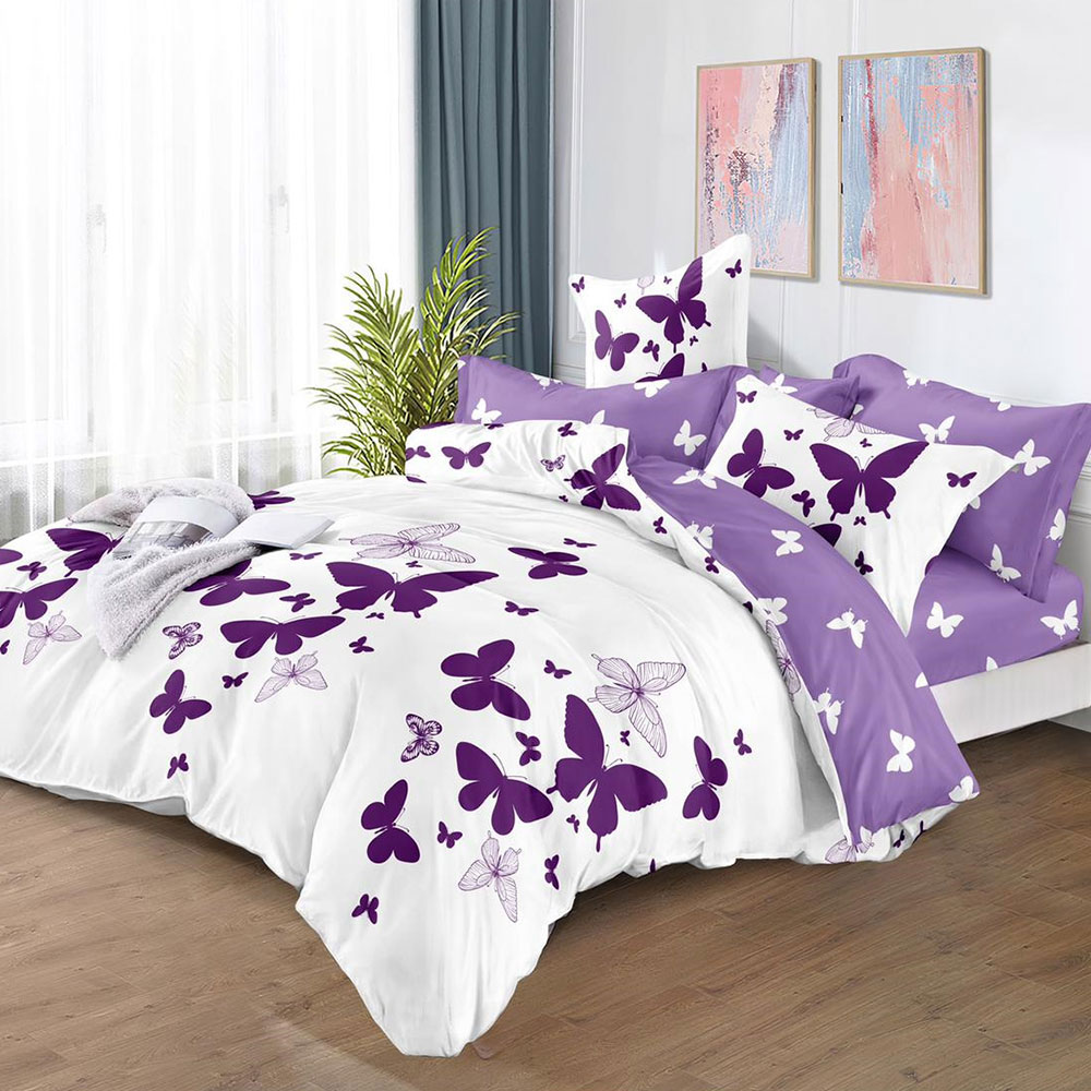 Lenjerie de pat cu 6 piese din bumbac 100%, tesatura FINET. Finet-ul este o tesatura care este tratata antisifonare, de o calitate superioara, cu o textura fina, usor pufoasa, moale si care permite pielii sa respire, pastrand temperatura corpului optima pe parcursul noptii.