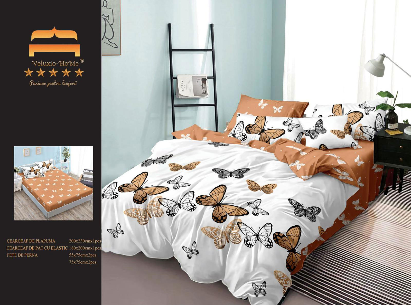 Lenjerie de pat cu 6 piese din bumbac 100%, tesatura FINET. Finet-ul este o tesatura care este tratata antisifonare, de o calitate superioara, cu o textura fina, usor pufoasa, moale si care permite pielii sa respire, pastrand temperatura corpului optima pe parcursul noptii.