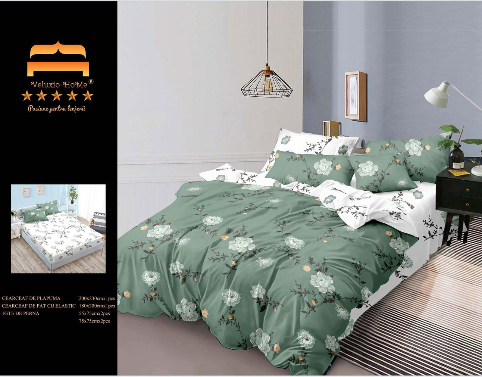 Lenjerie de pat cu 6 piese din bumbac 100%, tesatura FINET. Finet-ul este o tesatura care este tratata antisifonare, de o calitate superioara, cu o textura fina, usor pufoasa, moale si care permite pielii sa respire, pastrand temperatura corpului optima pe parcursul noptii.