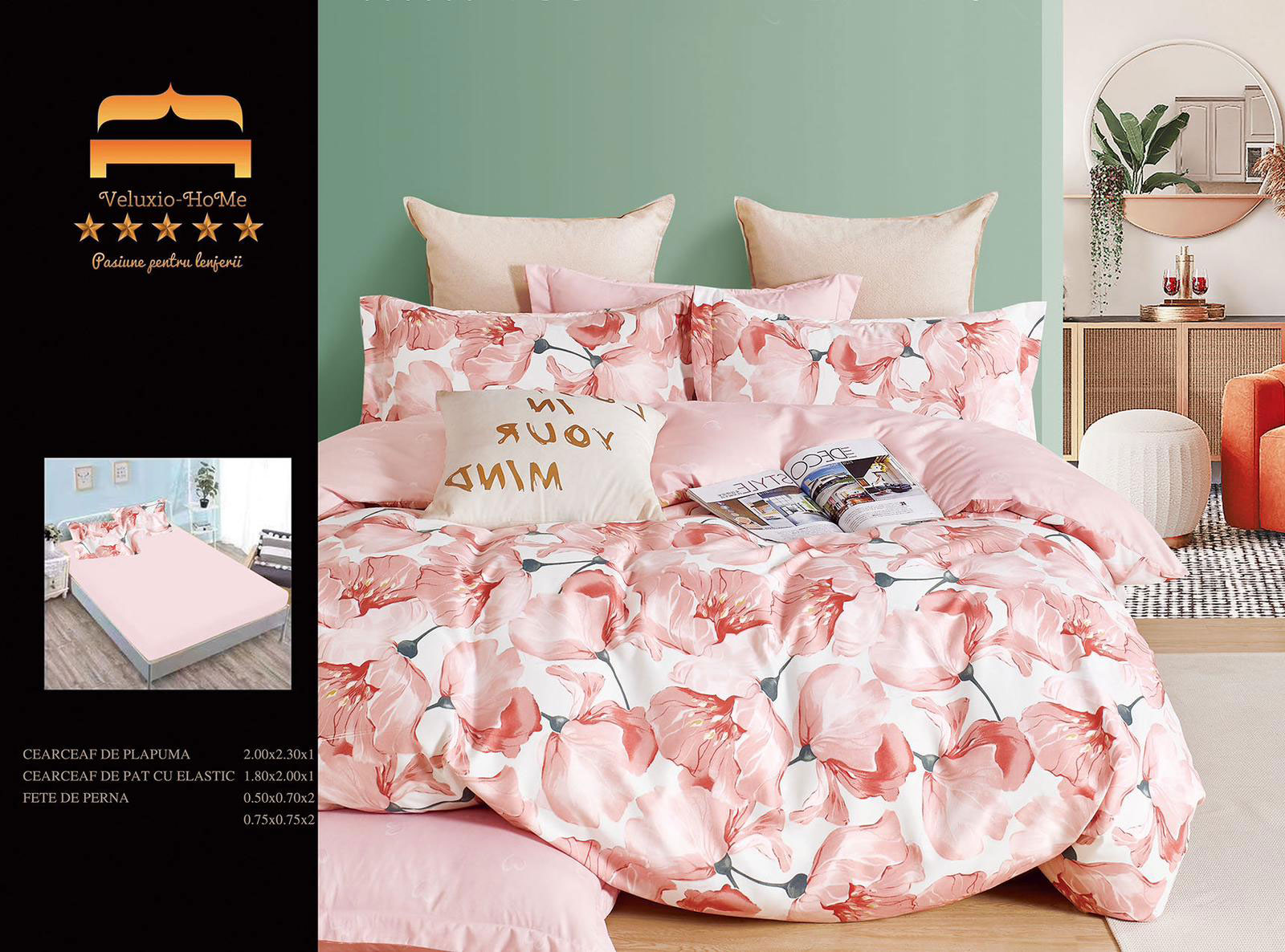 Lenjerie de pat cu 6 piese din bumbac 100%, tesatura FINET. Finet-ul este o tesatura care este tratata antisifonare, de o calitate superioara, cu o textura fina, usor pufoasa, moale si care permite pielii sa respire, pastrand temperatura corpului optima pe parcursul noptii.