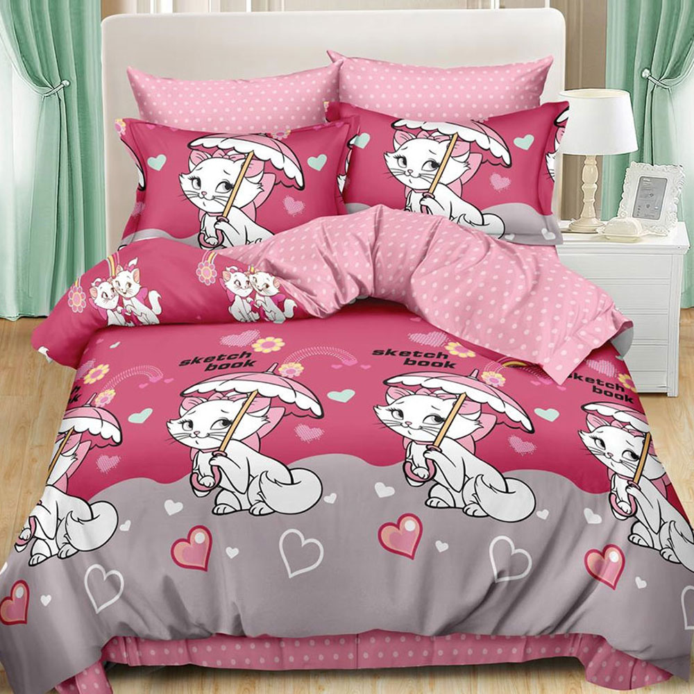 Lenjerie pentru pat dublu, cu 6 piese confectionate din 100% bumbac, tesatura tip finet. Materialul din care este confectionata lenjeria este de calitate superioara cu o textura fina, moale, foarte placuta la atingere si tratat antisifonare. Garantat nu se decoloreaza daca se respecta instructiunile de intretinere.